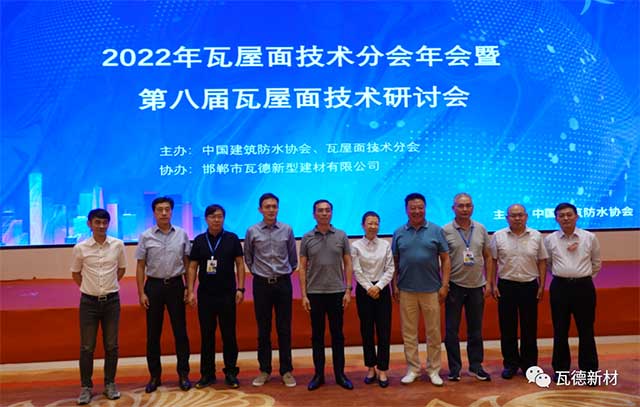 7月27日,由瓦德新材協(xié)辦,作為2022第三屆防水行業(yè)大會平行論壇的2022年第八屆瓦屋面技術(shù)與市場研討會,在南京白金漢爵大酒店召開。瓦德新材董事長謝富強(qiáng)帶隊(duì)參加。