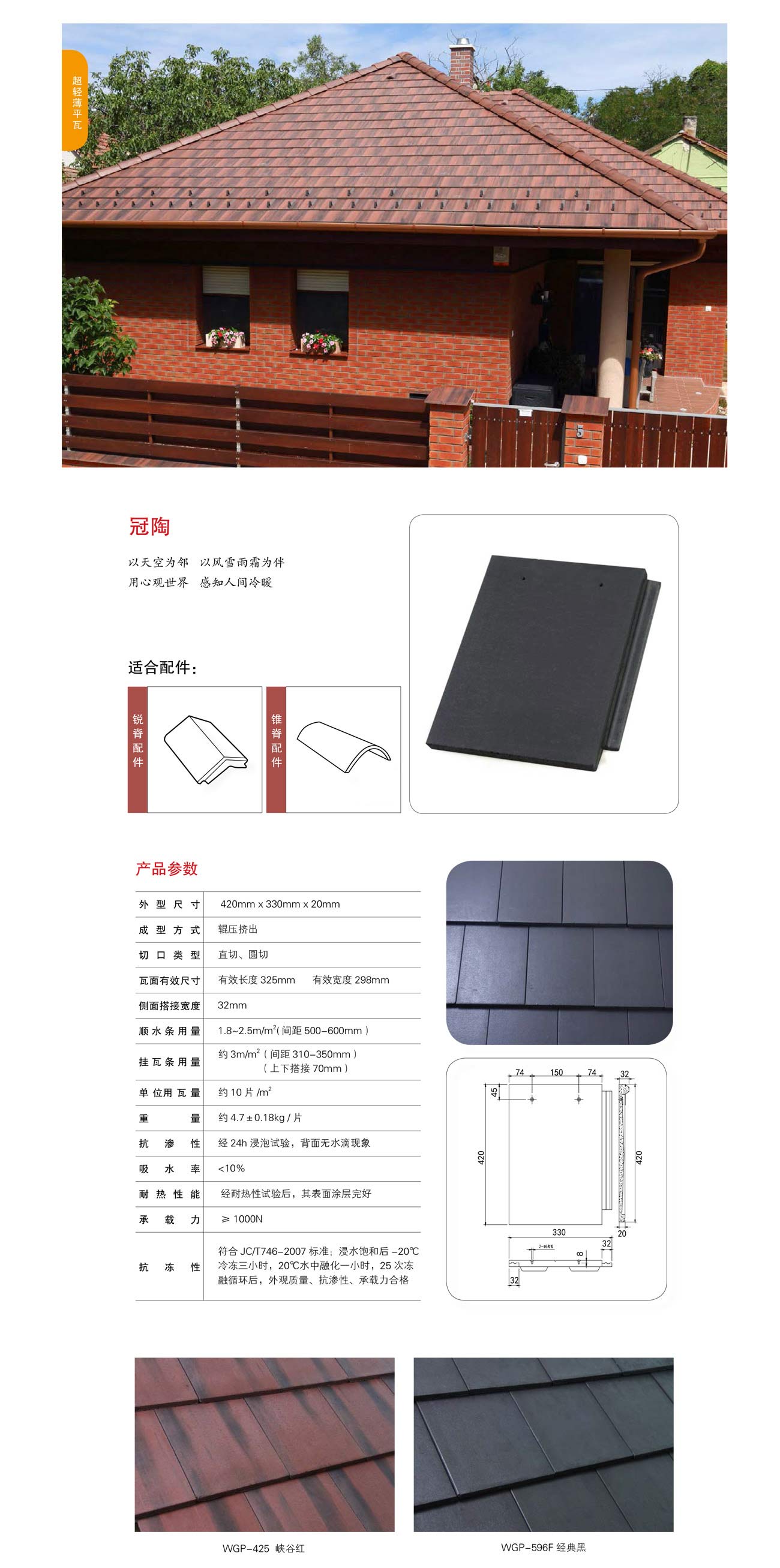 當(dāng)前位置:網(wǎng)站首頁>>產(chǎn)品介紹>>瓦德彩色混凝土瓦>>冠系列輕薄平瓦